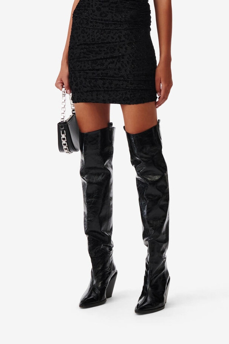 Gedrapeerde glinsterende rok.