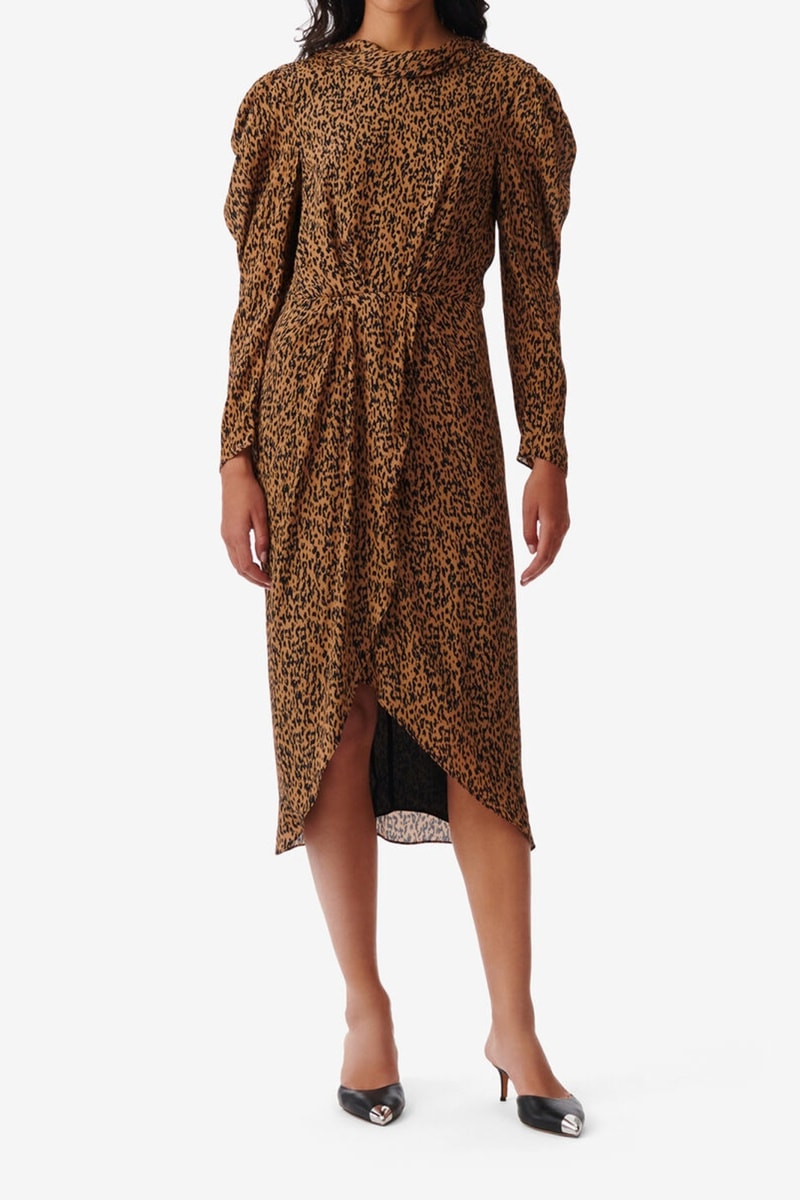 Zijde Midi-jurk Elyane - Zwart en Camel