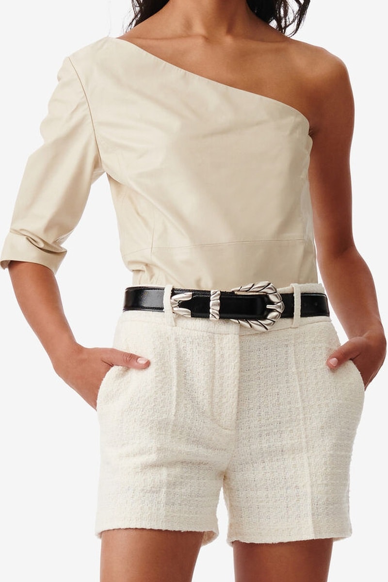 Asymmetrische Lamsleren Top Ameda - Ecru