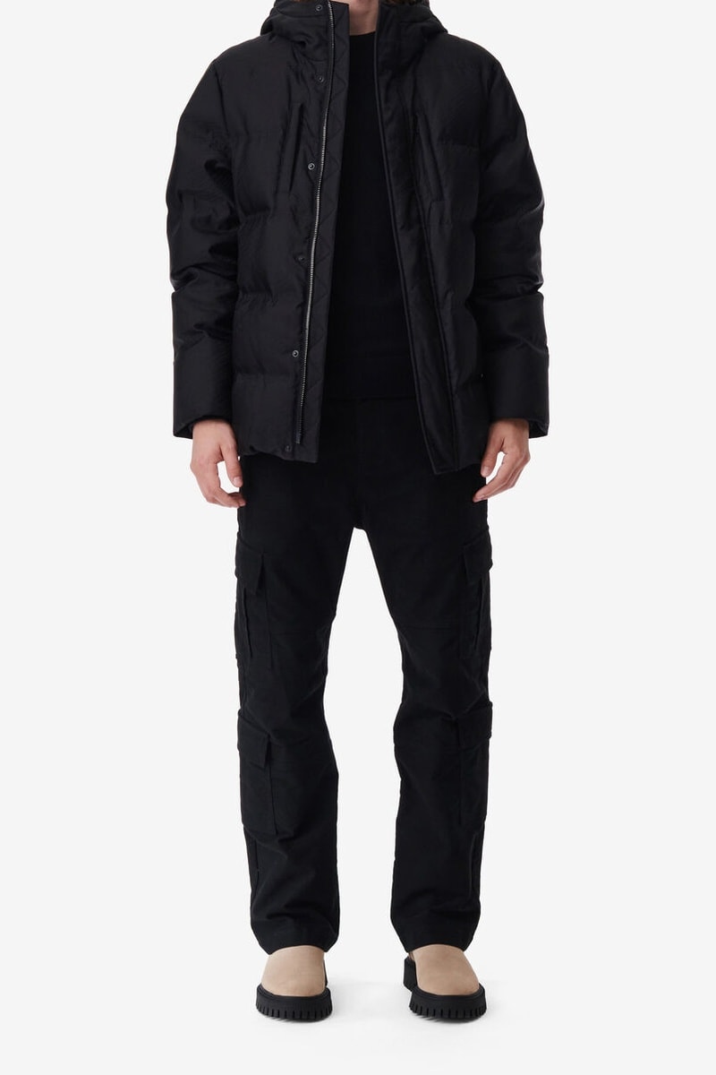 Gewatteerde jas met capuchon.