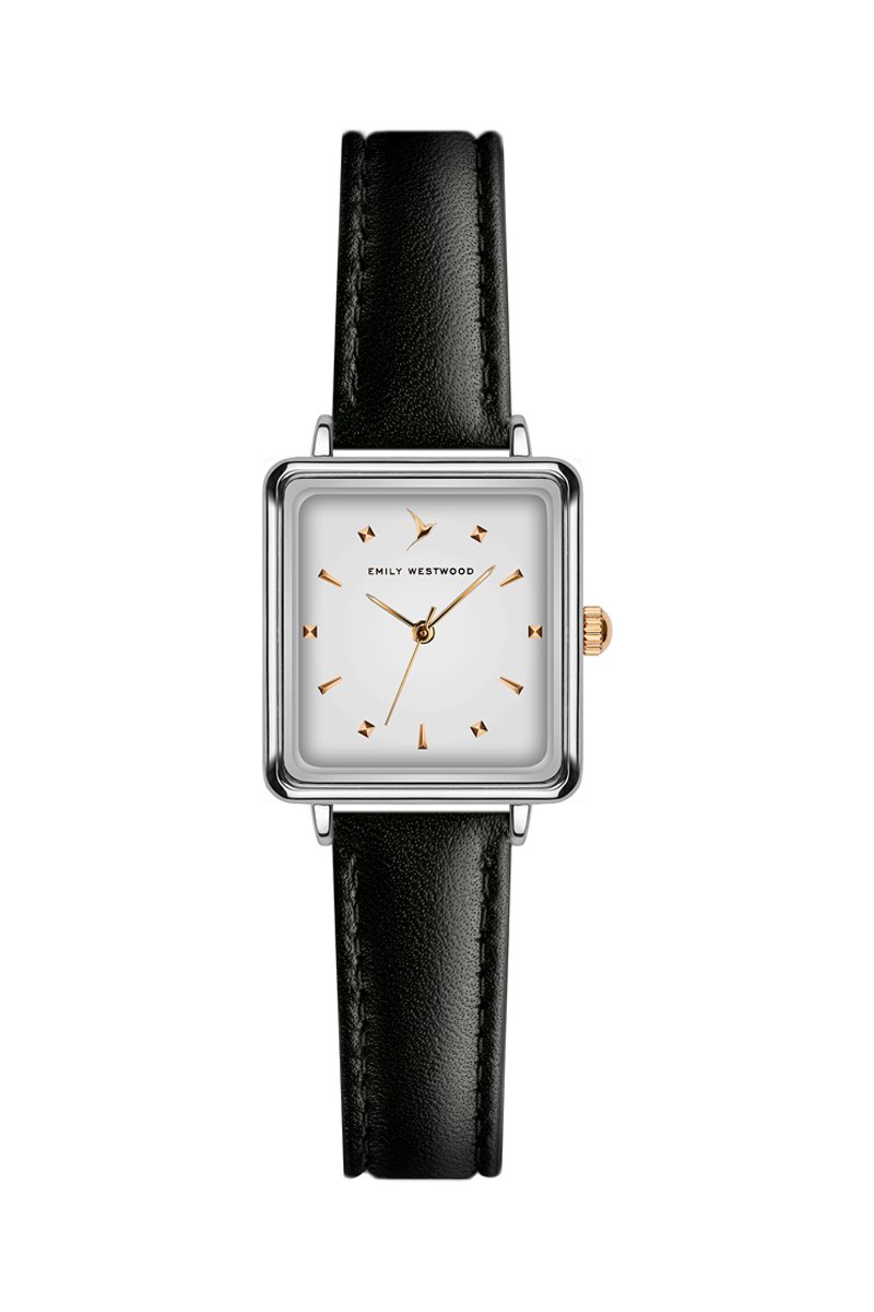 Leren Quartz Horloge - Zwart en Zilverkleurig - Emily Westwood