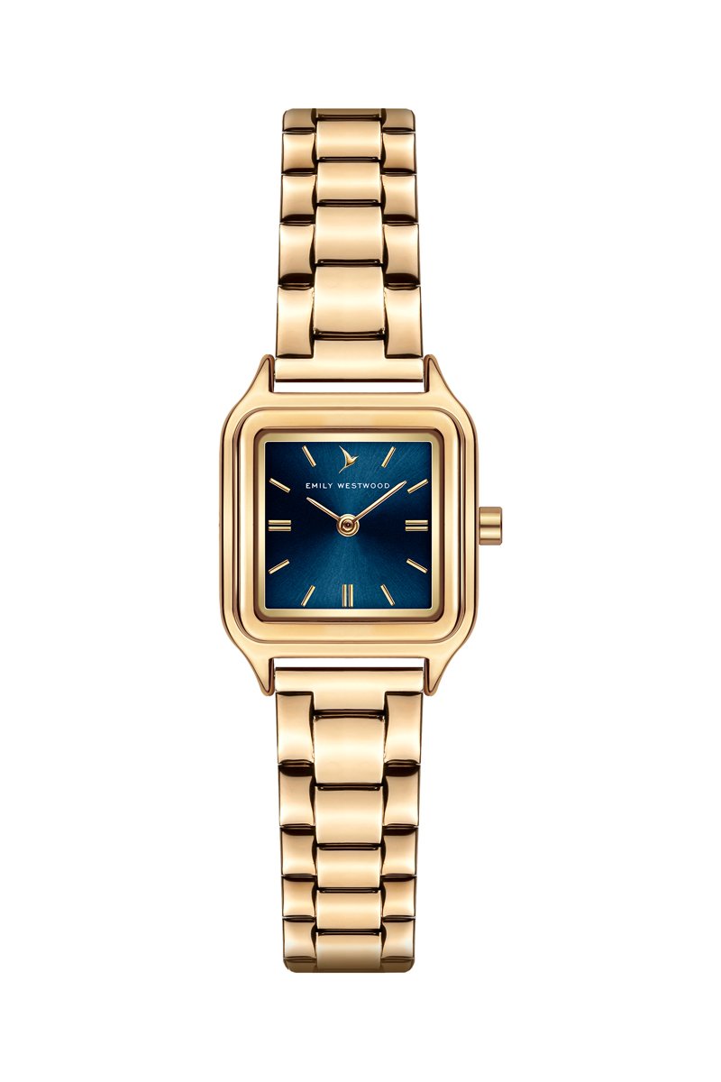 Stalen Quartz Horloge - Goudkleurig en Blauw - Emily Westwood