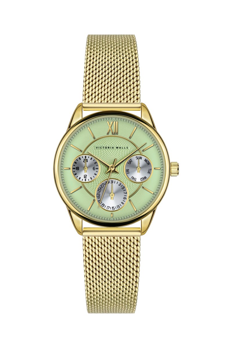 Stalen Quartz Horloge - Goudkleurig en Lichtgroen - Victoria Walls
