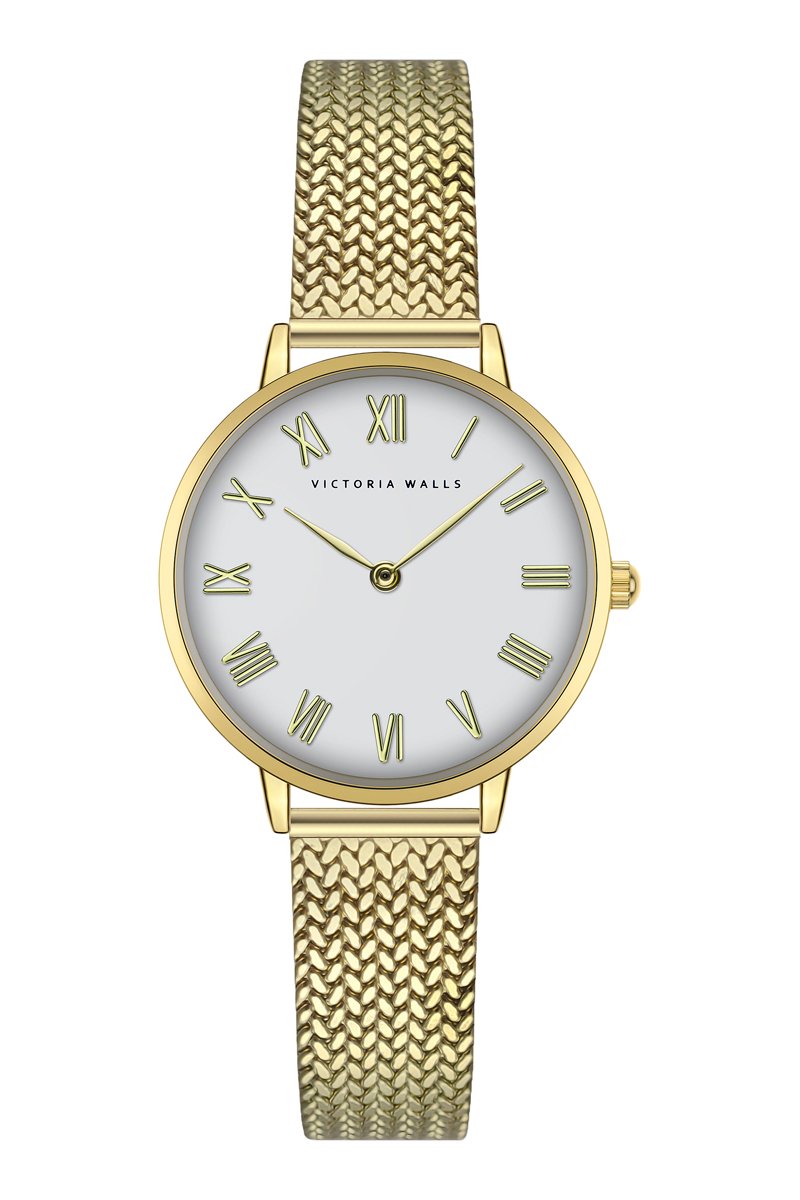 Stalen Quartz Horloge - Goudkleurig en Wit - Victoria Walls