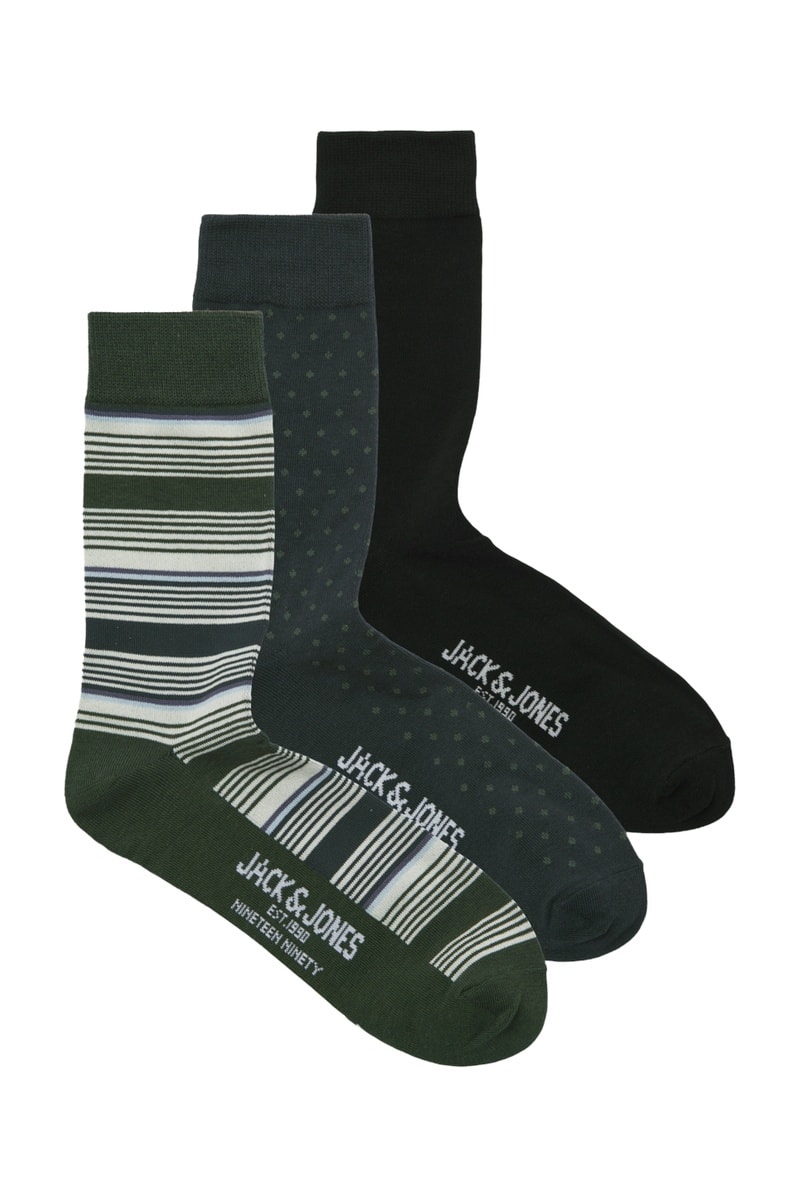 3 paar sokken waarvan 1 met streepmotief en 1 met stippenmotief.