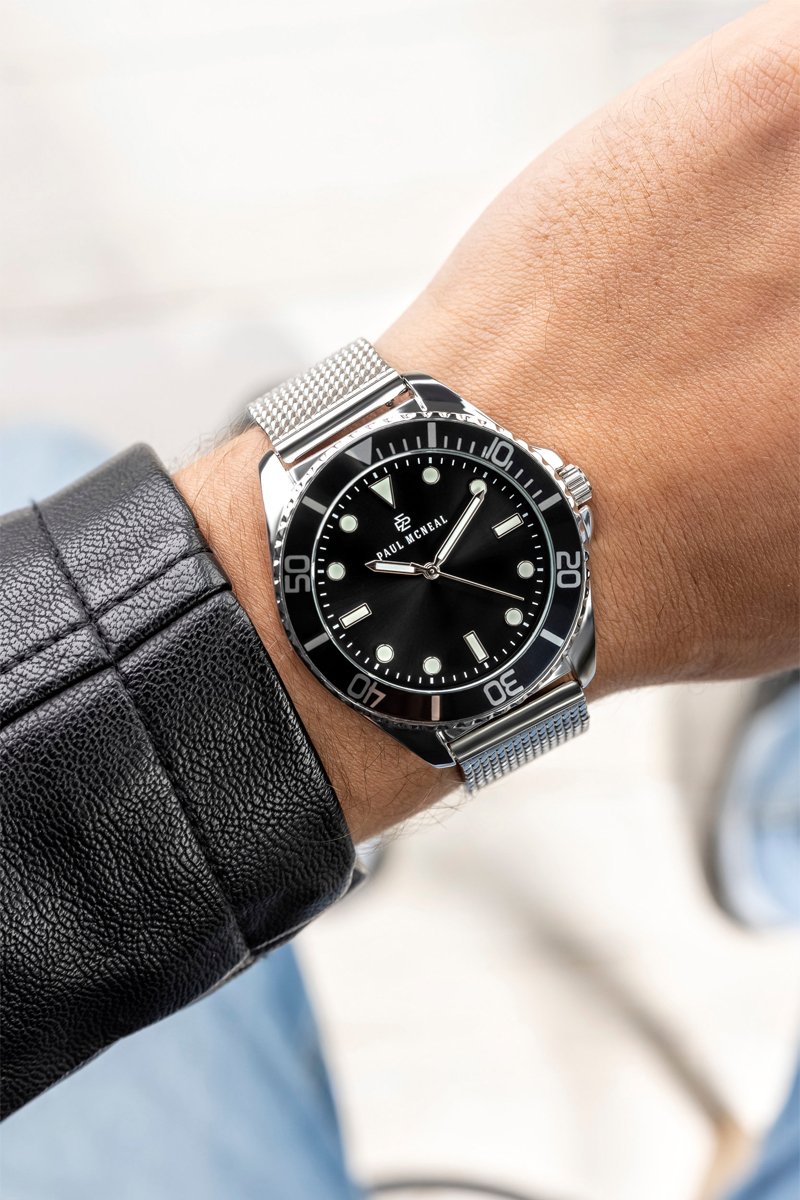 Stalen Quartz Horloge - Tachymeter - Zilverkleurig en Zwart - Paul McNeal