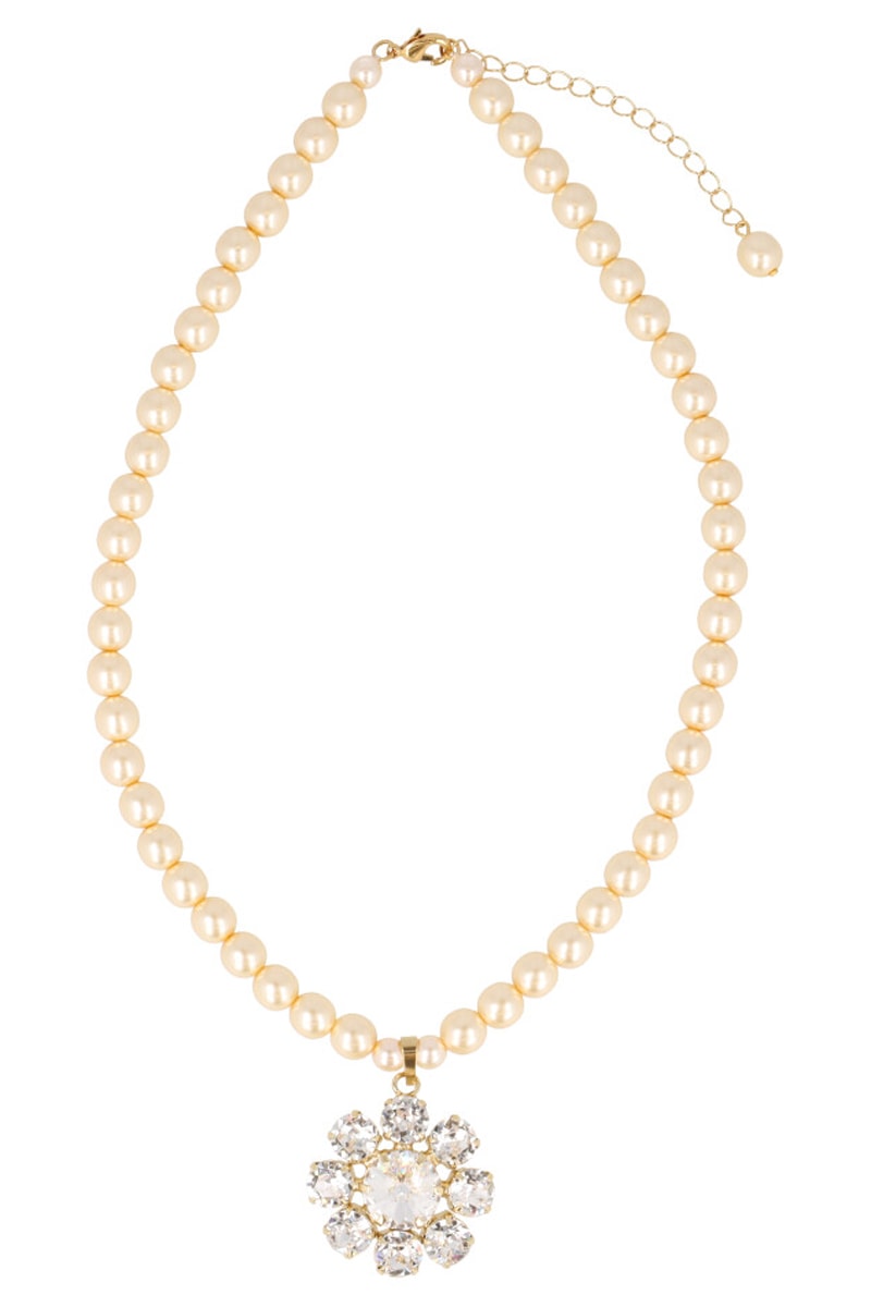 Ketting van doublé geelgoud versierd met Swarovski kristallen en kunstparels.