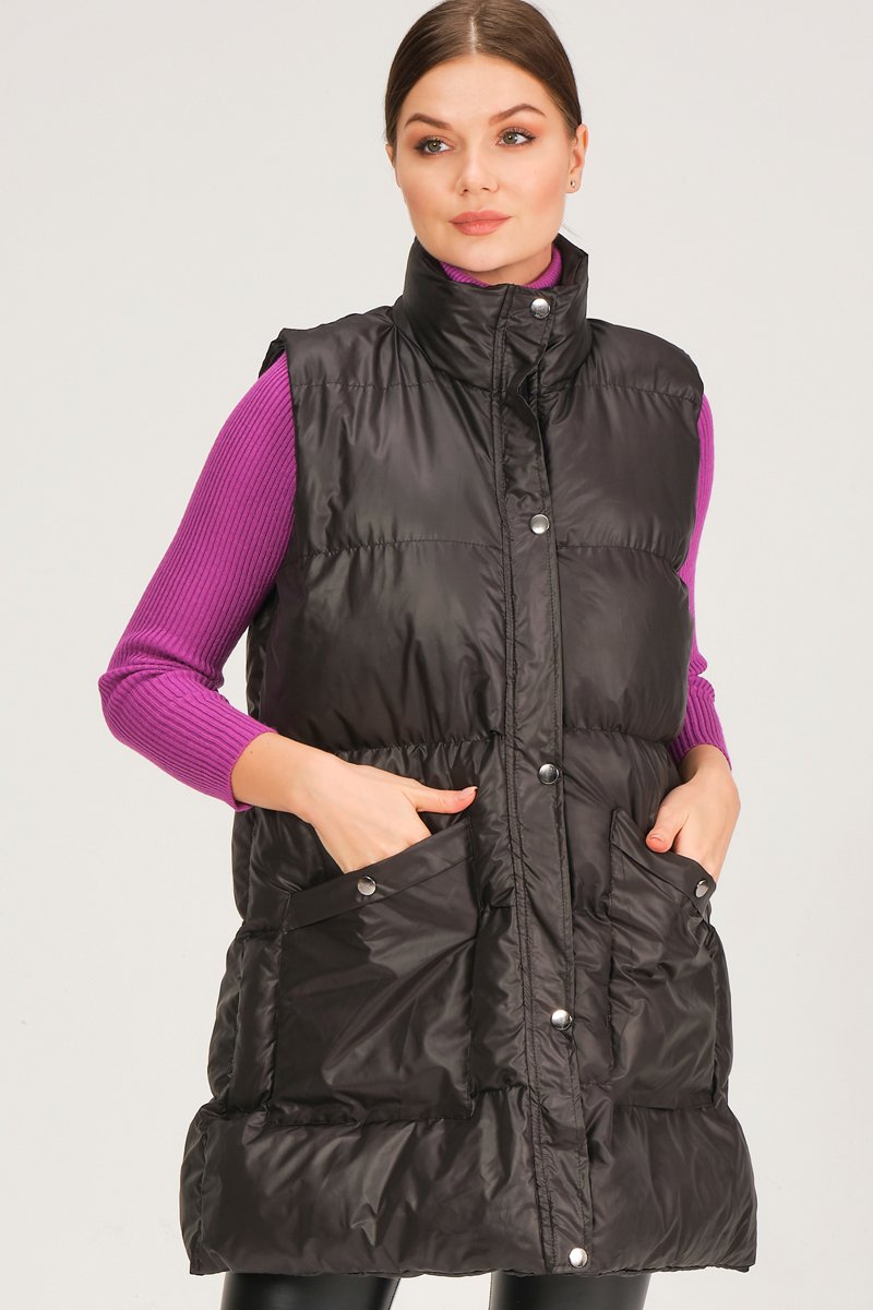 Lange gewatteerde jas. - Zwart