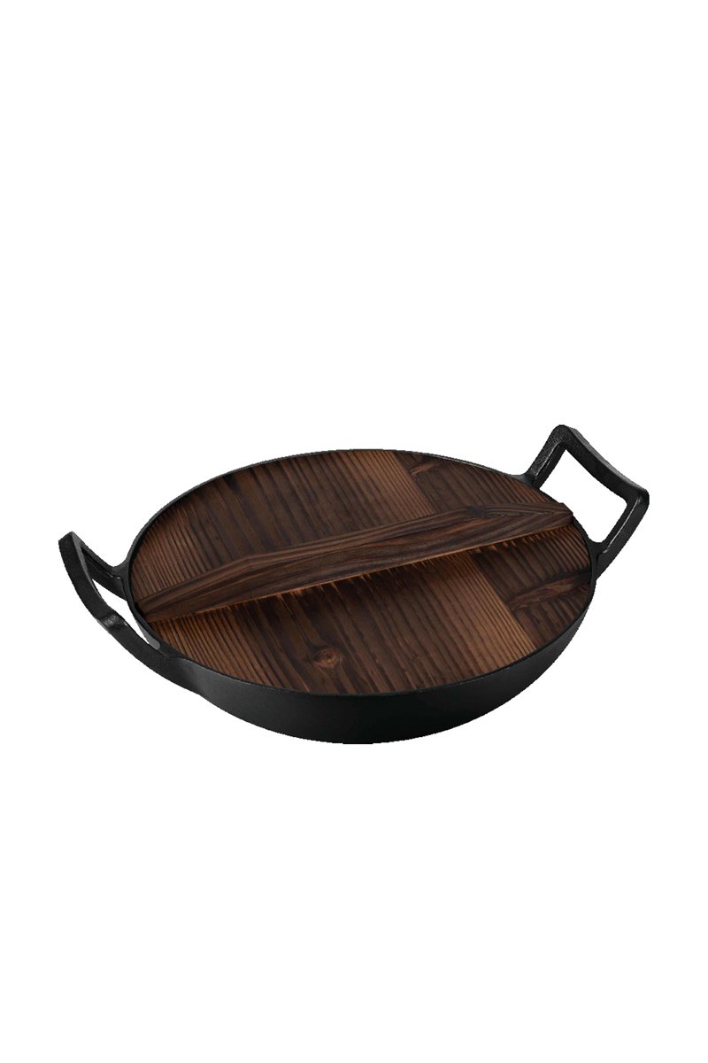 Gietaluminium Wokpan met Houten Deksel - 30 cm