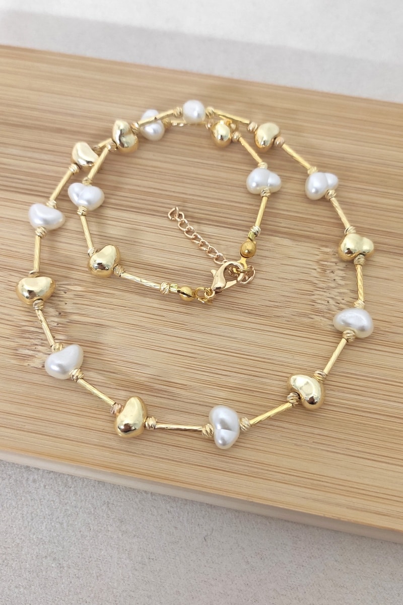 Ketting ingelegd met 9 kunstparels.