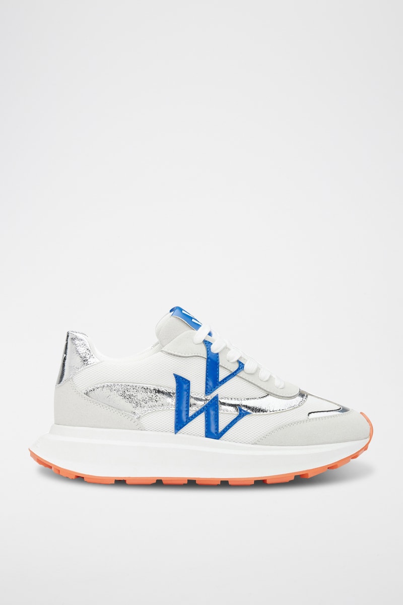 Kleur: wit, felblauw, zilverkleurig en oranje