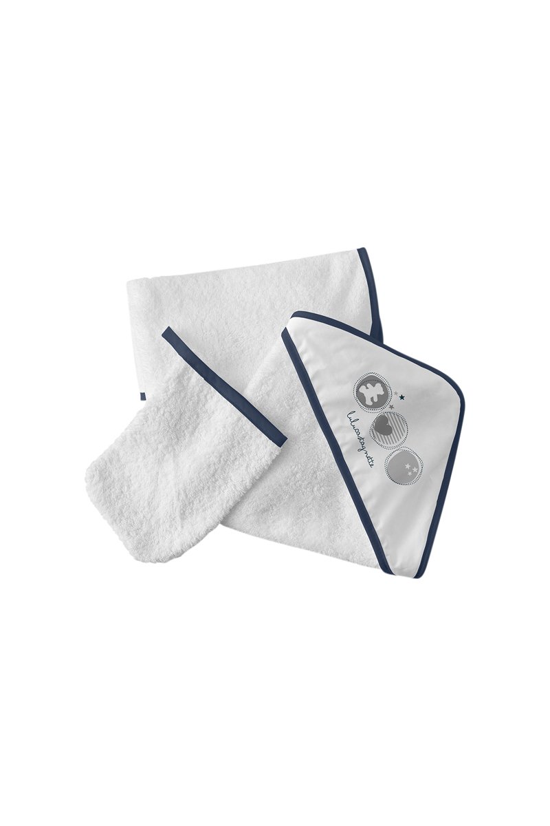 Badcape & Washandje Hart - Marineblauw en Wit - 75 x 75 cm