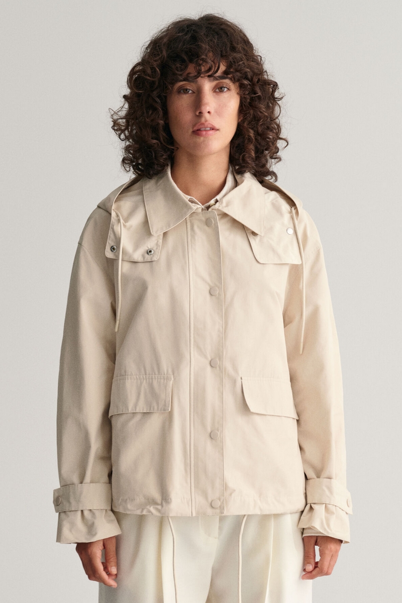 Windjack regular fit met afneembaar capuchon met lange mouwen.