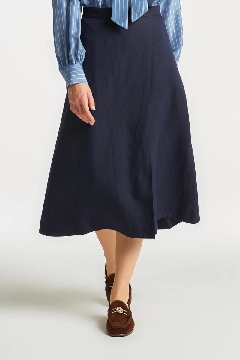 Linnen Midi-Wikkelrok - Marineblauw