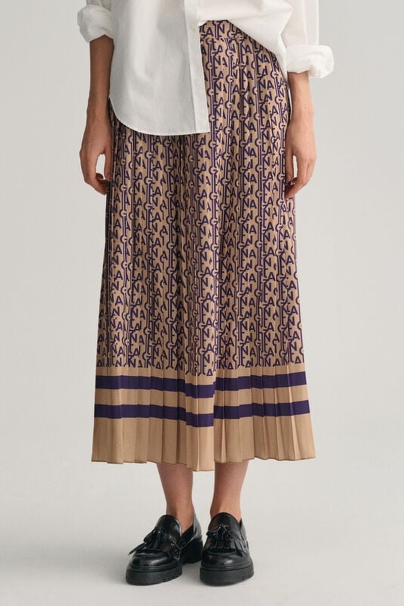 Geplooide midirok met halfhoge taille.