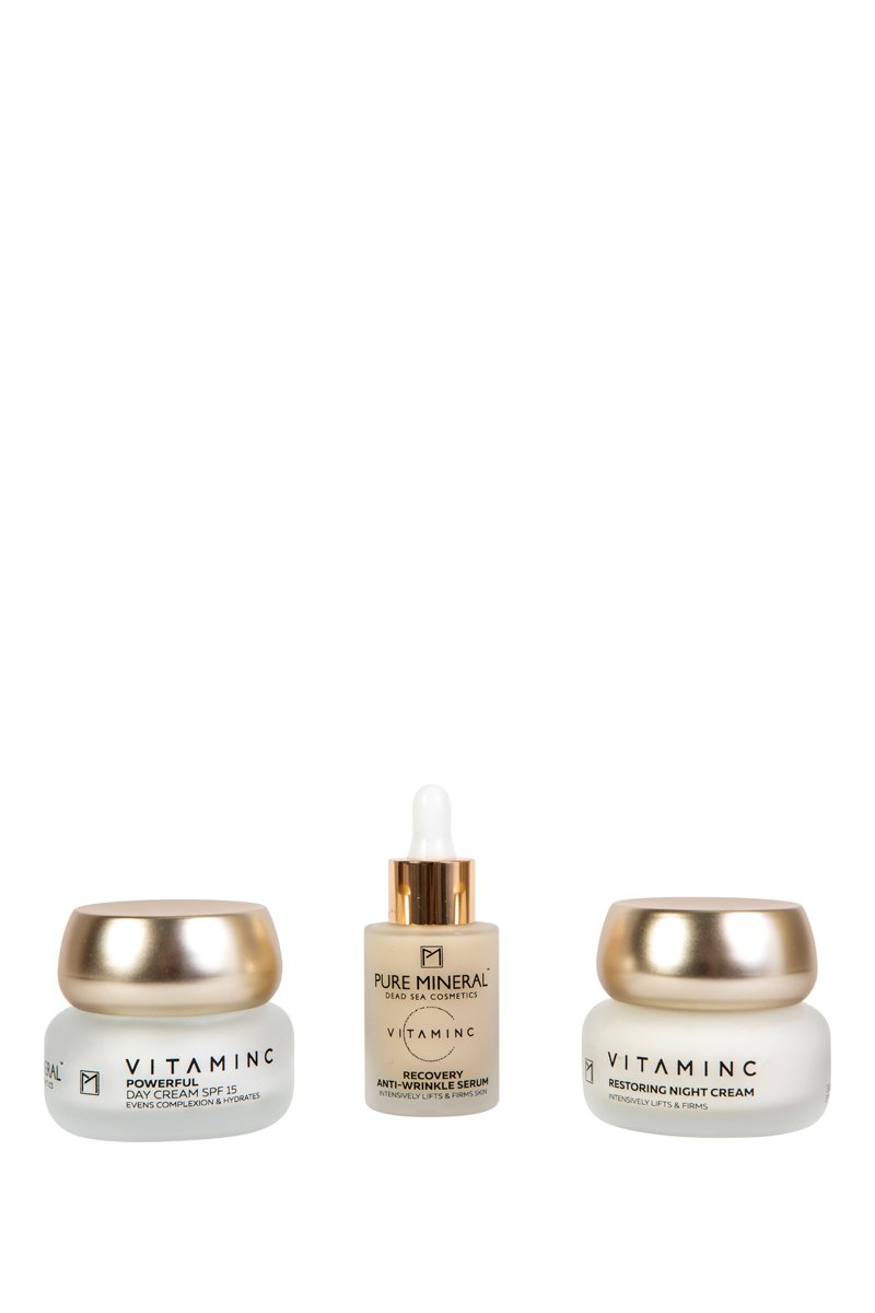 Ingrediënten nachtcrème: Aqua (Water), Glyceryl Stearate Se, Cetyl Alcohol, Isopropyl Myristate, Kaolin, Caprylic/Capric Triglyceride, Olive Oil Polyglyceryl-6 Esters, Persea Gratissima (Avocado) Oil, Sodium Hyaluronate, Hydrogenated Collagen, Butyrospermum Parkii (Shea) Butter, Isopentyldiol, Pelargonium Extract, Cucumis Sativum (Cucumber) Extract, Prunus Amygdalus Dulcis (Sweet Almond) Oil, Camelia Sinensis (GREEN Tea) Leaf Extract, Carbomer 940, Benzoic Acid, Sorbic Acid, Dehydroacetic Acid, Caprylyl Glycol, Benzyl Alcohol, Maris Sal (Dead Sea Salt), Hydrogenated Soy Protein, Xanthan Gum, D-Panthenol, Potassium Sorbate, Tocopherol (Vit. E), Fragrance, Phospholipids, Helianthus Annuus (Sunflower) Seed Oil, Aloe Barbadensis Leaf Extract, Chamomille Recutita (Matricaria) Flower Extract, Retinol (vit. A), Titanium Dioxide, Maris Sal (Dead Sea Salt), Citrus Limonium (Lemon) Extract.
