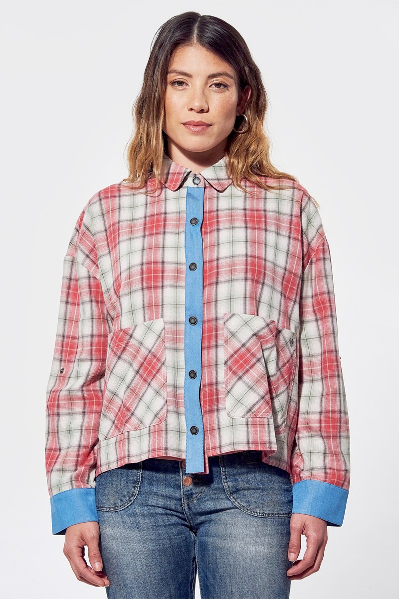 Blouse met lange mouwen en drukknoop.
