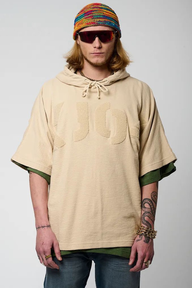 T-shirt met capuchon en trekkoorden met korte mouwen.