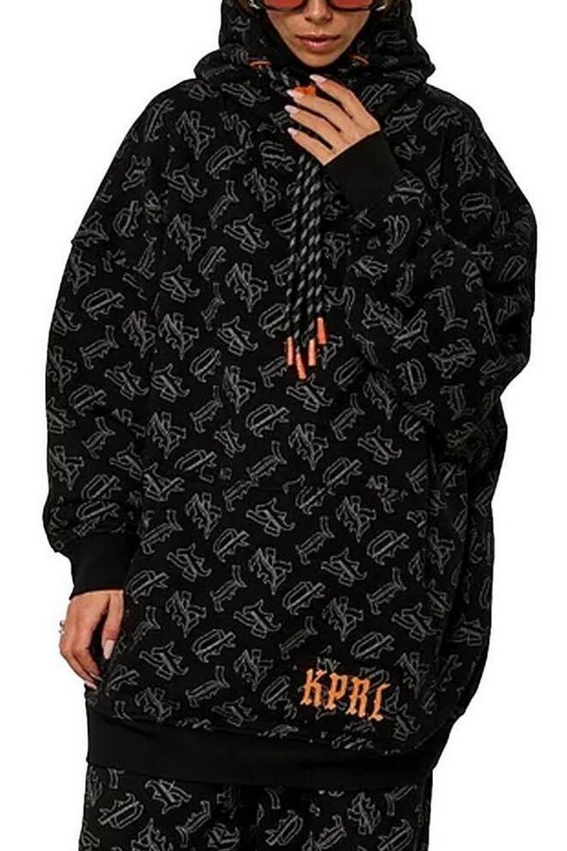 Sweater met capuchon en trekkoorden met lange mouwen.