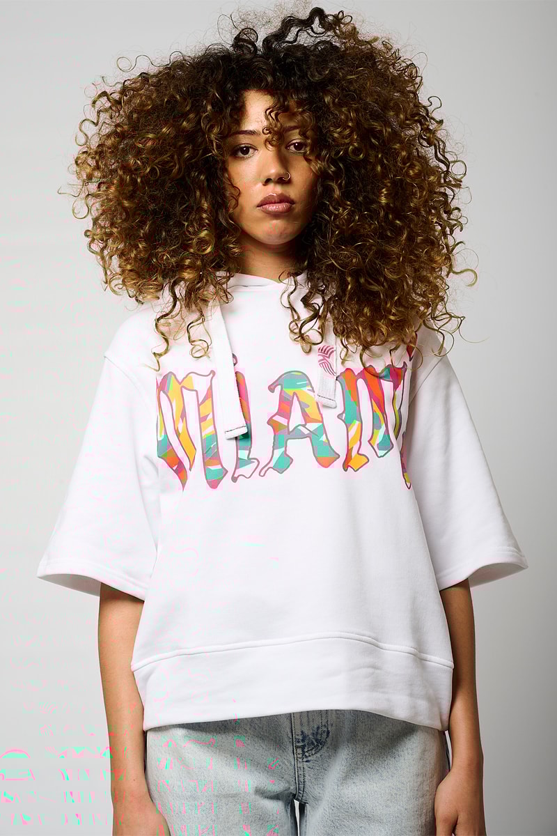 Sweater met capuchon en trekkoorden met korte mouwen.