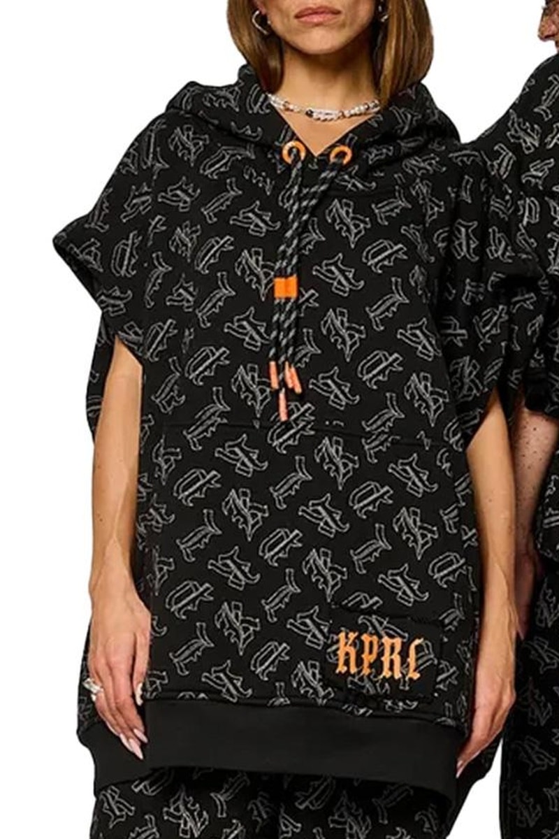Sweater met capuchon en trekkoorden met korte mouwen.