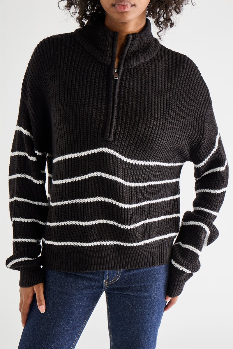 Streepmotief op de mouwen, aan de voorkant en aan de achterkant.