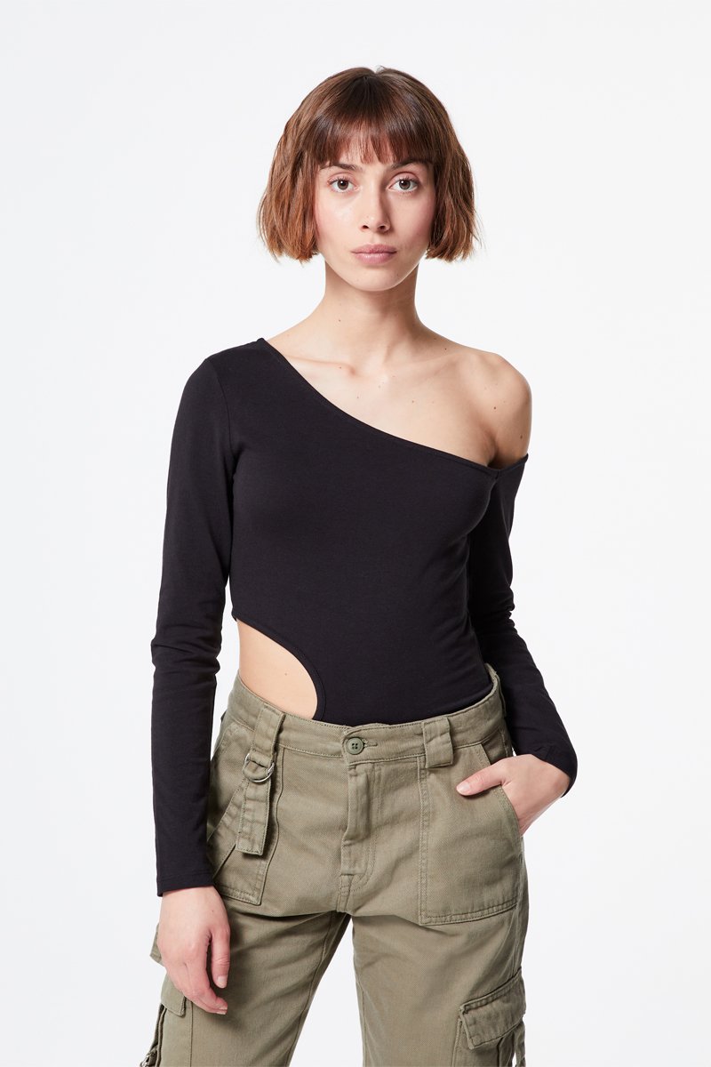Asymmetrische Bodysuit - Zwart