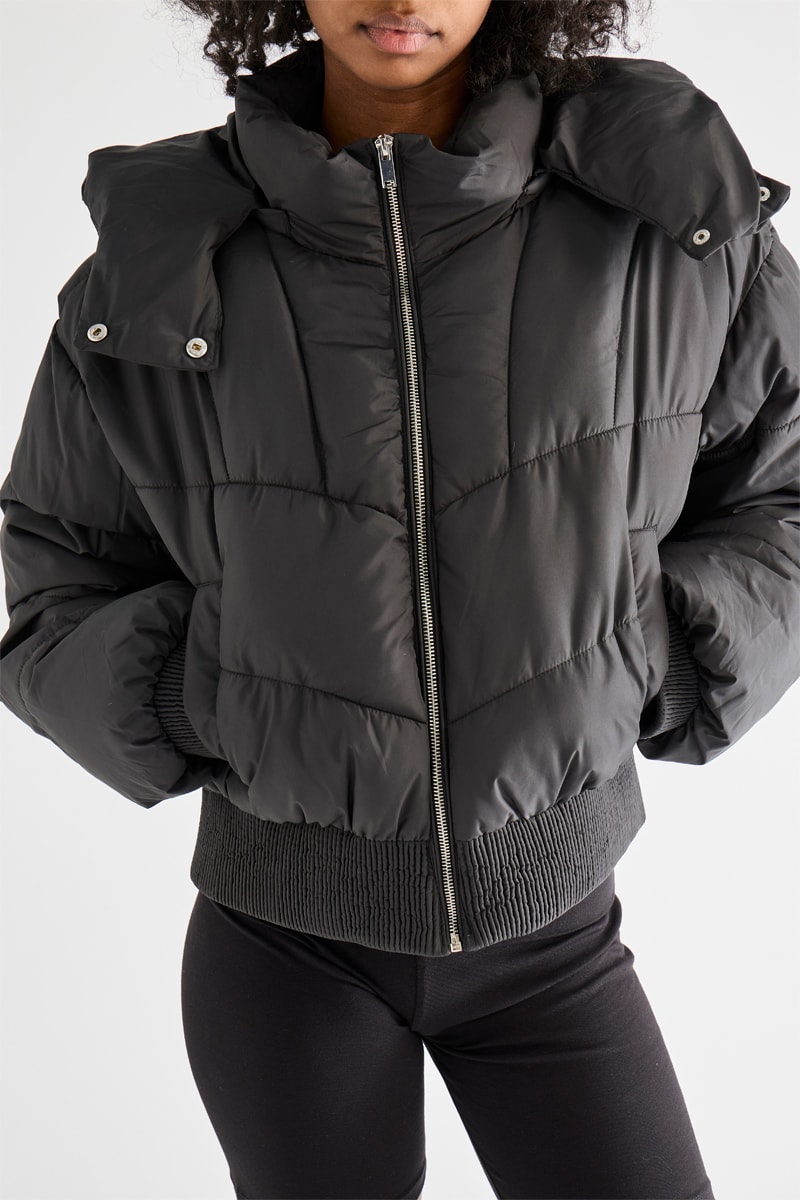 Gewatteerde Jas met Capuchon - Zwart