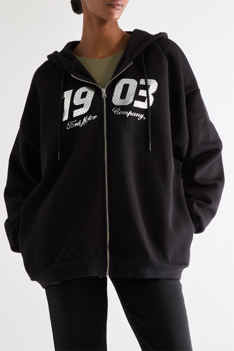 Sweater met capuchon en trekkoorden met lange mouwen.