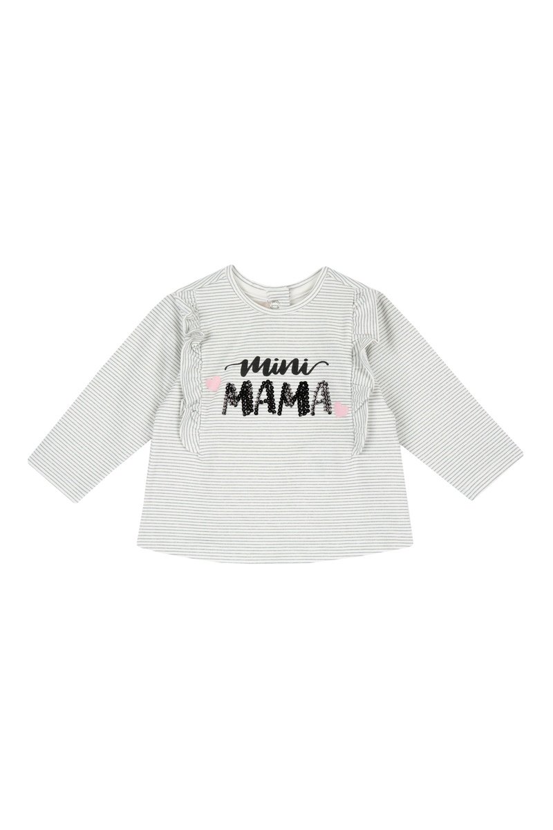 Belettering, belettering met pailletten en hartmotief aan de voorkant.