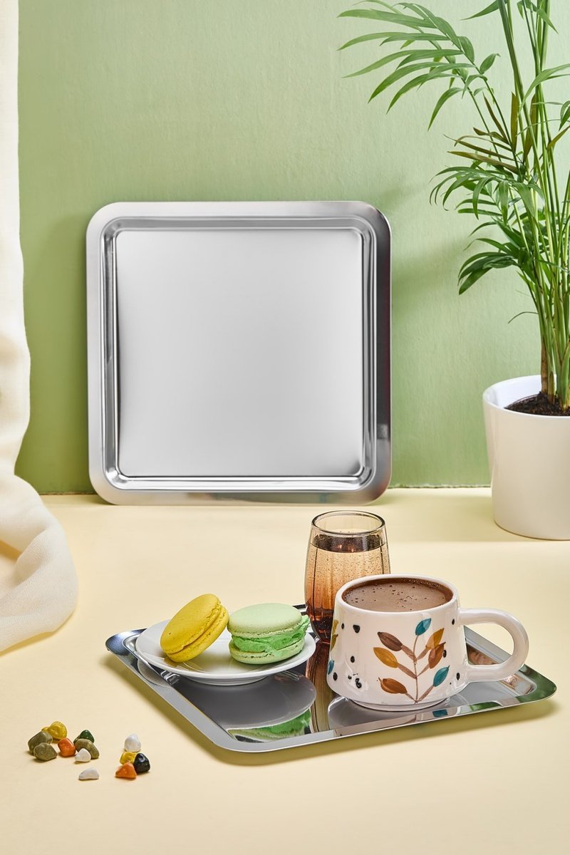 6 Roestvrijstalen Dienbladen - 22 x 22 cm