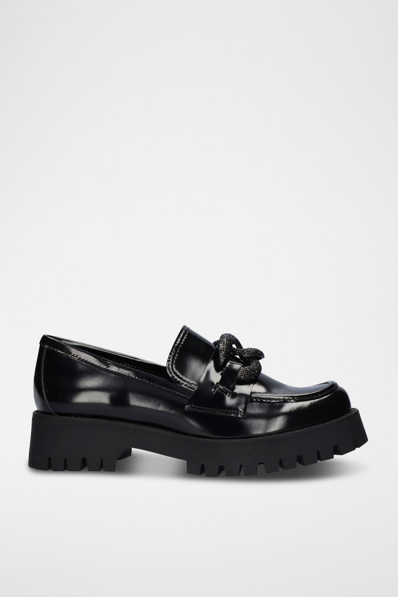 Platform mocassins met hak.