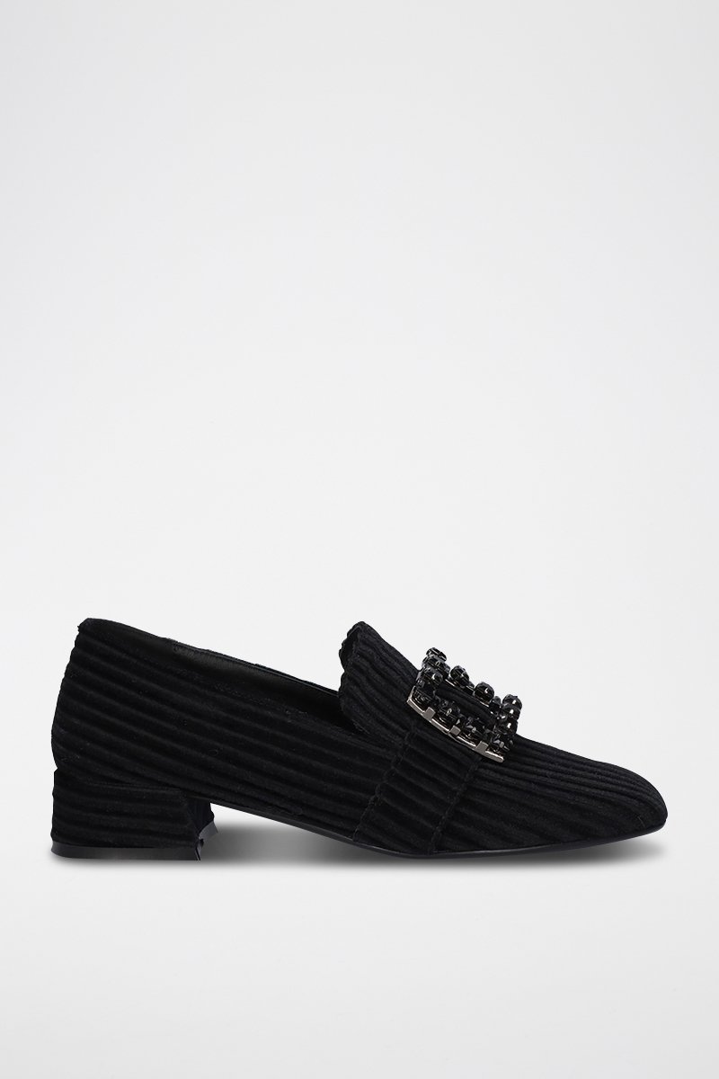 Hoge Leren Mocassins met Hak - Zwart