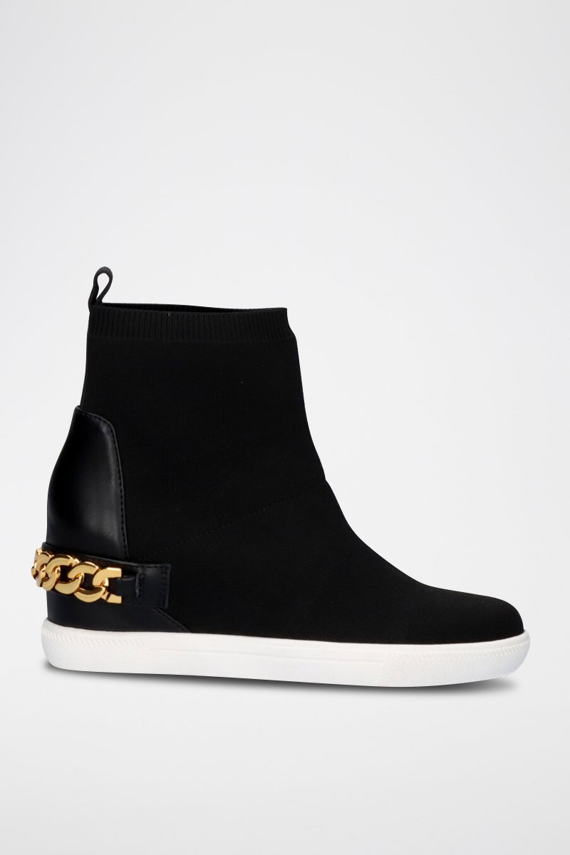 Leren Enkellaarzen met Sleehak - Zwart