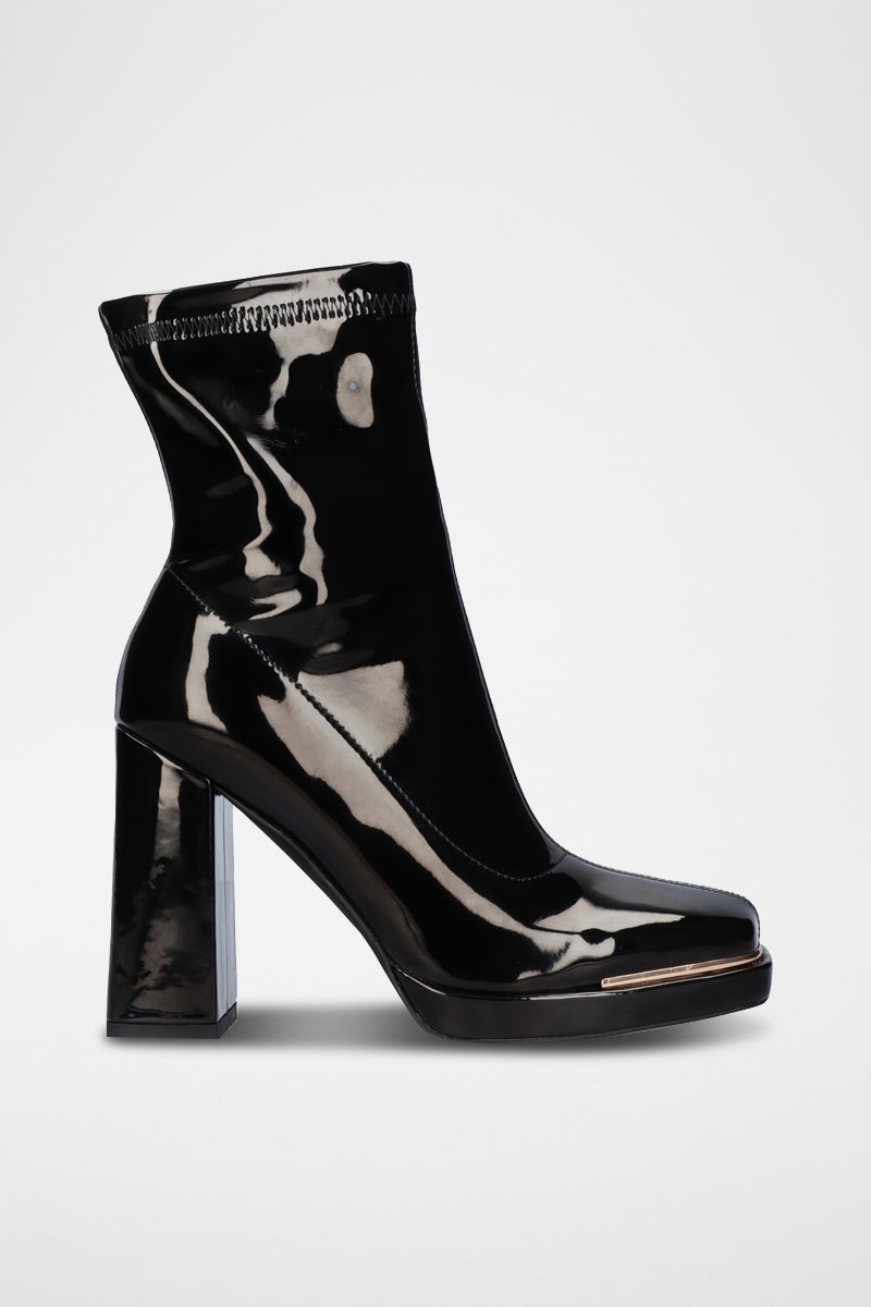 Gelakte enkellaarzen.