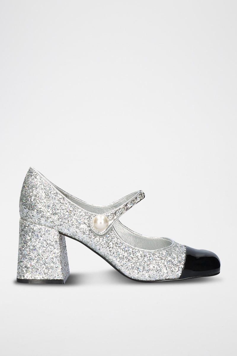Glinsterende mary janes met hak.