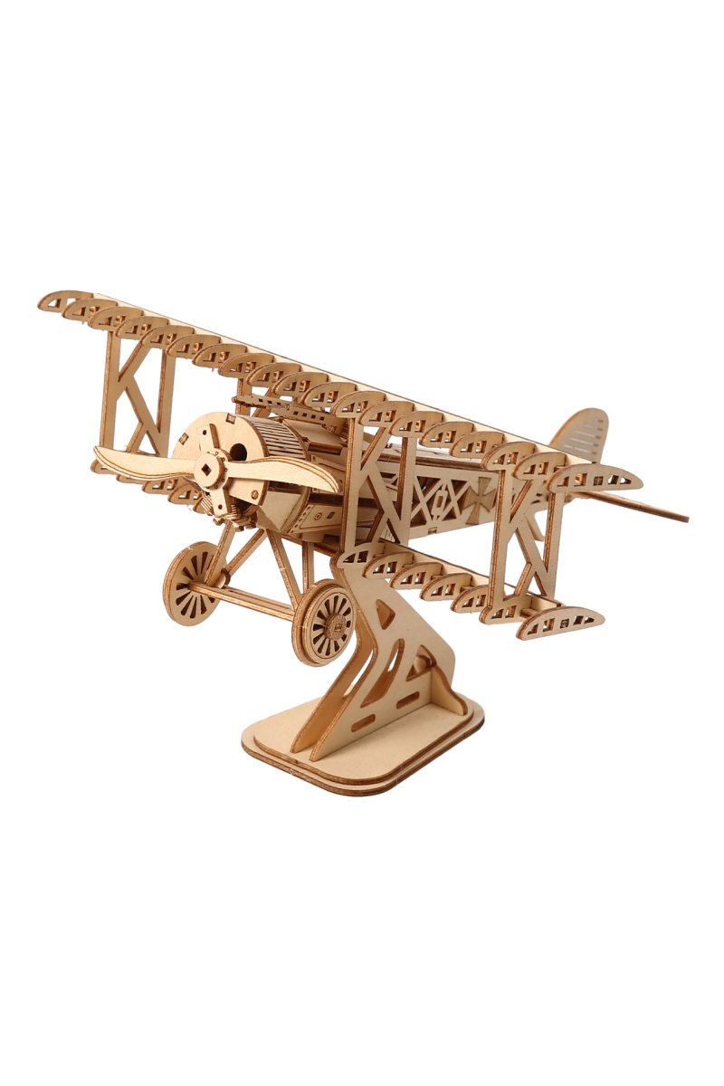 3D-puzzel in de vorm van een vliegtuig van hout.