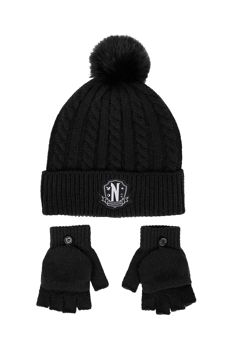 Muts met Pompon en 2-in-1 Vingerloze Handschoenen Stitch Lilo en Stitch Disney - Zwart