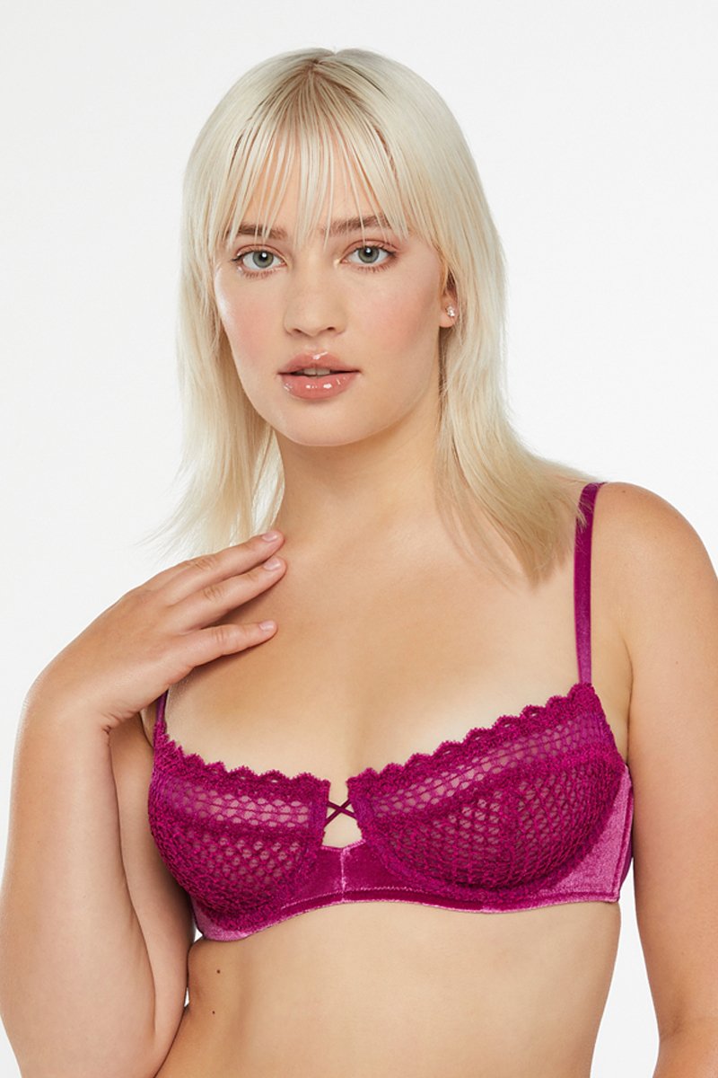 Uitsnijding en gekruiste bandjes tussen de cups.