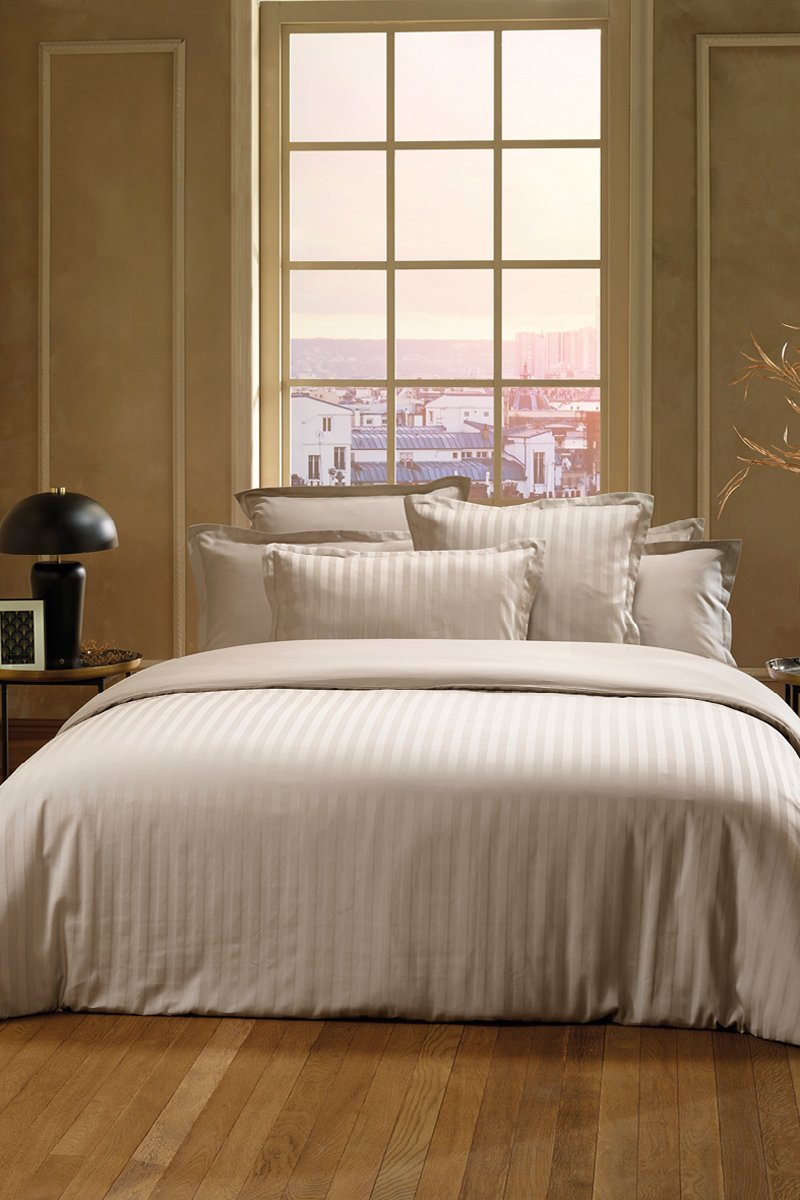 Katoensatijnen Overtrekset 120 Draad/cm² Jacquard - Taupe