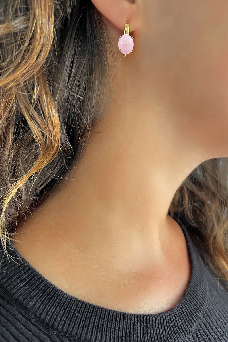 Creolen - Sterling Zilver Doublé Geelgoud en Rozenkwarts