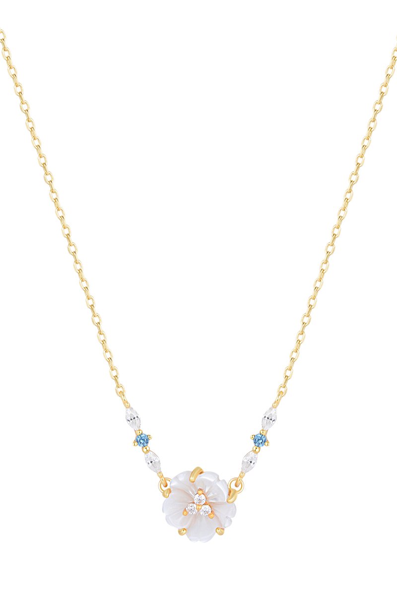 Ketting - Zilver Doublé Geelgoud, parelmoer, Zirkonia en Spinelles