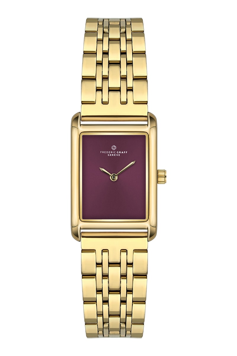 Stalen Quartz Horloge -Goudkleurig en bordeauxrood - Frederic Graff