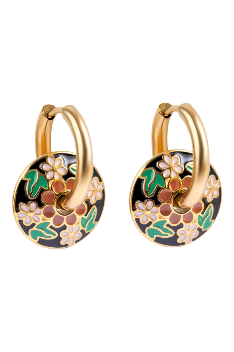 Oorbellen van doublé geelgoud en emaille.