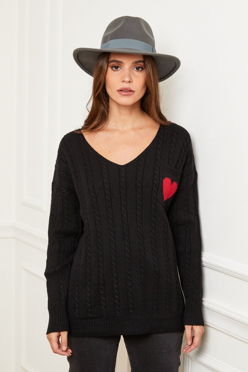 Ineengedraaid geweven op de mouwen en aan de voorkant.
