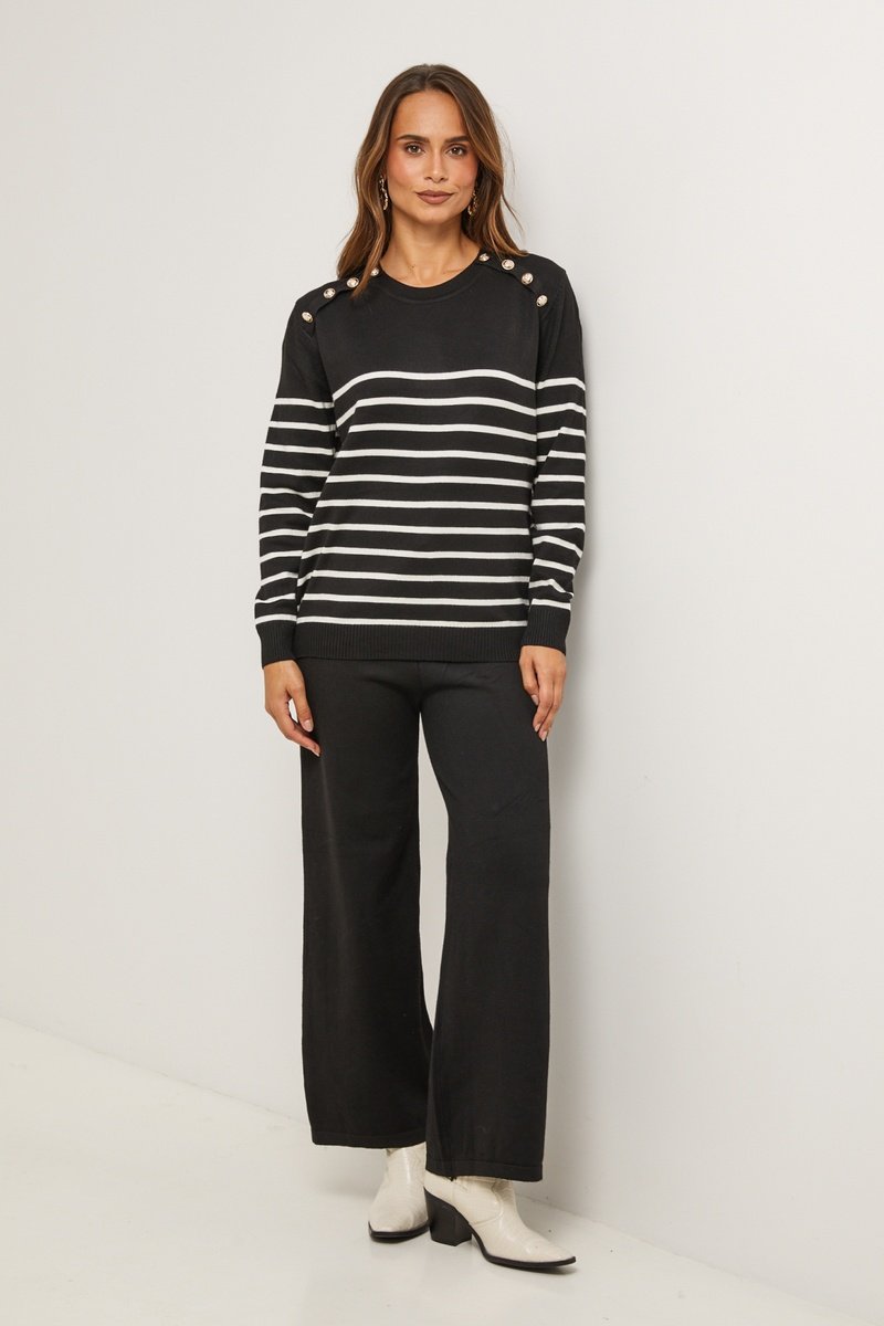 Streepmotief op de mouwen, aan de voorkant en aan de achterkant.