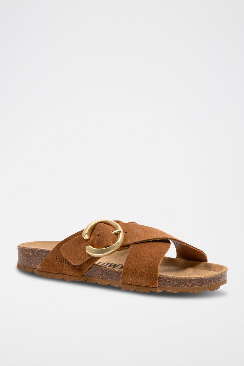 Gekruiste bandjes en gespbandje aan de voorkant.