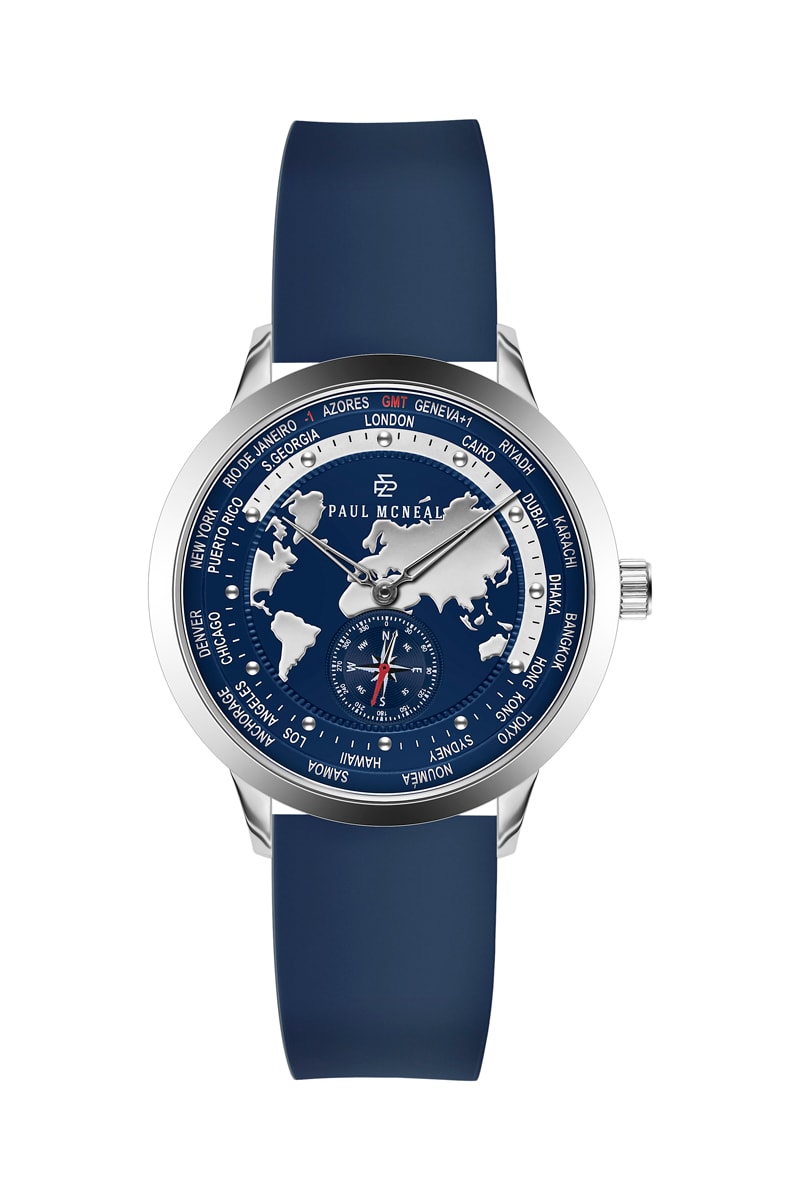 Silicone Quartz Horloge - GMT-functie - Kompas - Marineblauw en Zilverkleurig