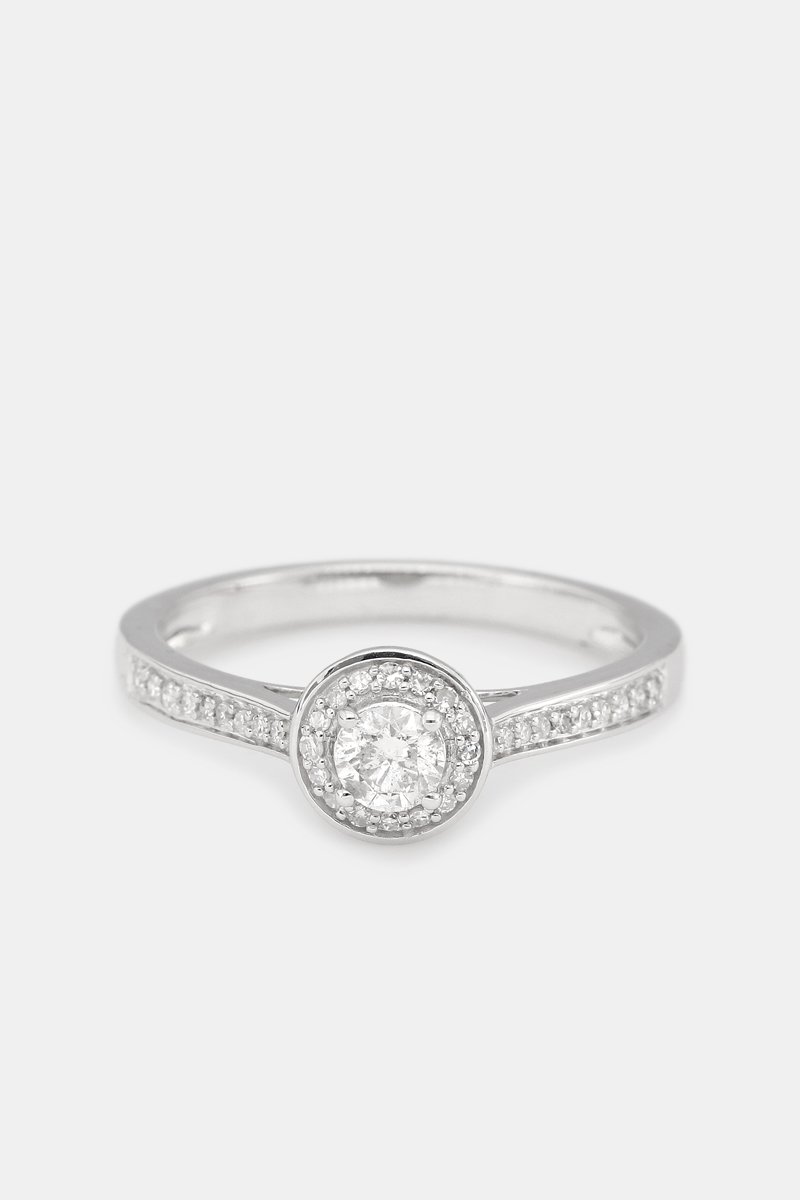 Verlovingsring van witgoud ingelegd met 39 diamanten waarvan 1 solitair.