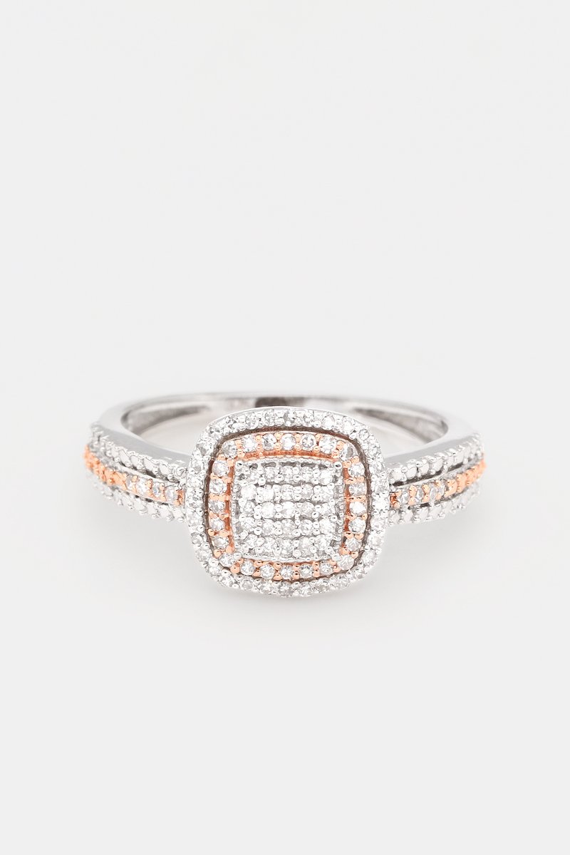 Ring Carré Antique - Witgoud, Roségoud en Diamanten